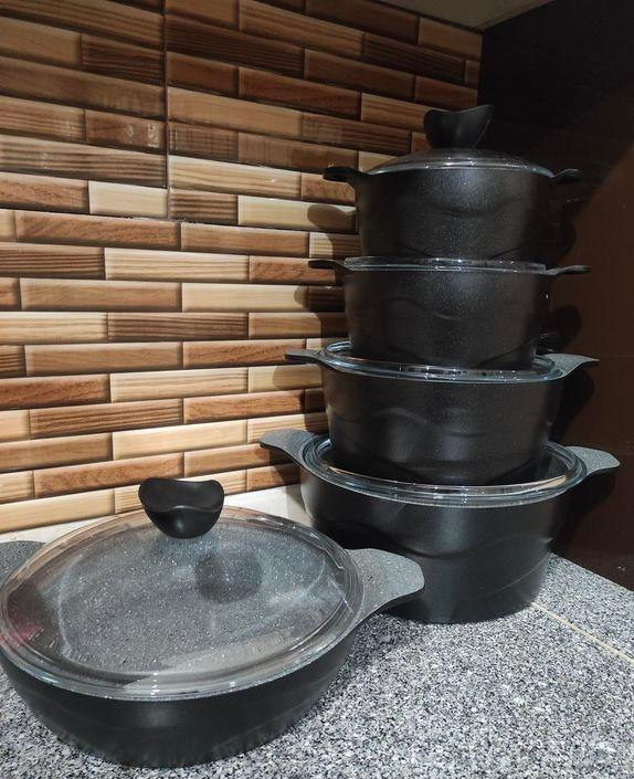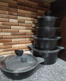 سرویس پخت و پز 10 پارچه دالغا (DALGHA )مدل full- A از جنس دایکاست آلمینیوم (چدن) ذخیم بوده و با طراحی ویژه قسمت تحتانی ظروف (شعله پخش کن) که باعث میشود حرارت به صورت کاملا یکدست در بین تمام نقاط این ظروف پخش شود. پوشش داخلی و بیرون این ظروف از جنس گرانیت چهارلایه نچسب میباشد. این پوشش گرانیتی بسیار مقاوم بوده و این موضوع باعث میشود که چسبندگی در این ظروف به حد صفر برسد به طوری که طبخ غذا با کمترین میزان روغن صورت پذیرد. به جهت استفاده از گرانیت در پوشش خارجی این سرویس در برابر حرارات کاملا مقاوم میباشد به صورتیکه کدر نمیشوند و این امر باعث شستشوی راحت این ظروف می شود. همیشه این فرمول رو در استفاده از ظروف گرانیتی رعایت کنید، قبل از اولین استفاده ظرف را در آب بشوید و کمی روغن خوراکی را با یک تکه اسفنج داخل ظرف به آرامی بمالید و سپس آن را شسته و خشک کنید.