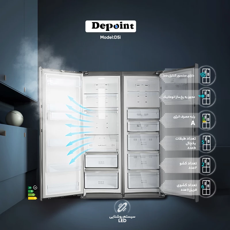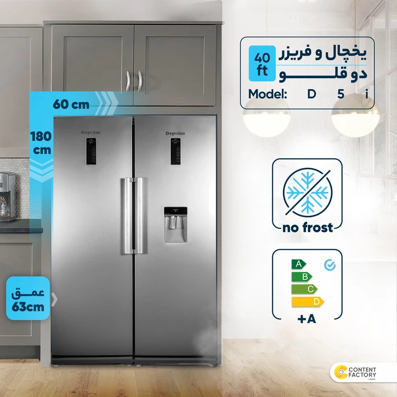 یخچال و فریزر دوقلو 40 فوت دیپوینت مدل (دی 5) D5 e سیلور